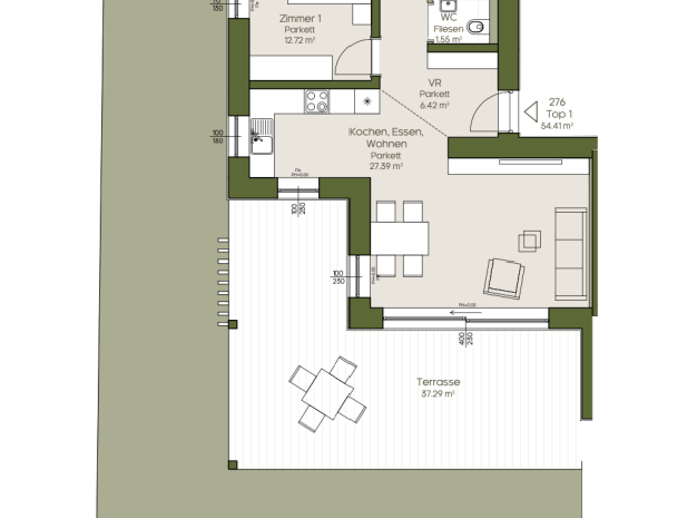 Die komfortablen Neubauwohnungen erstrecken sich in einer Größe von ca. 54m² bis 137m² und verfügen über großzügig, angelegte Gärten, Terrassen und Balkone. Ausgestattet sind die in Massivbauweise errichteten Wohnungen mit sehr großen Fenster- und Hebeschiebtüren, hochwertigen Fliesen, Parkettböden und elektrischen Raffstores.